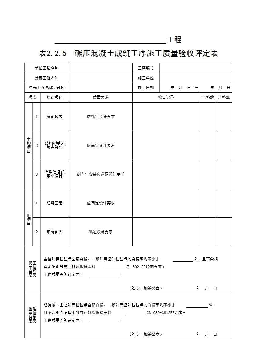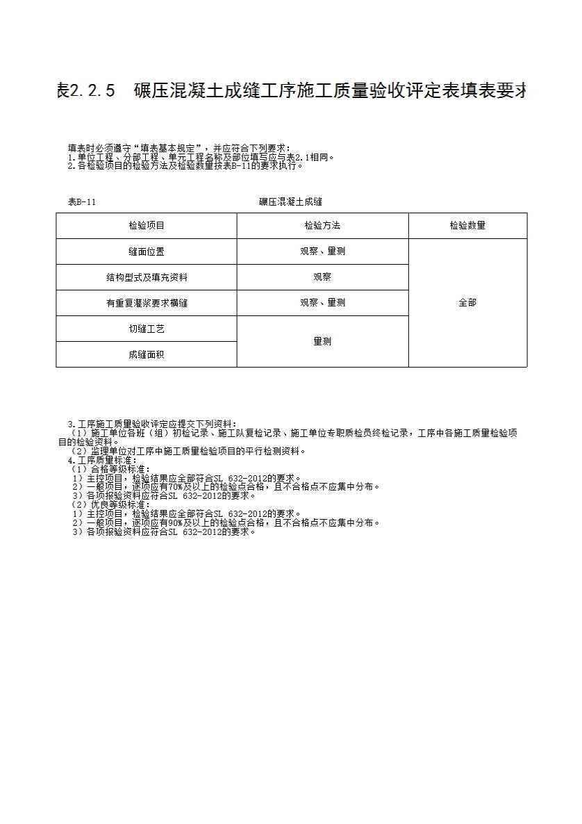 表2.2.5 碾压混凝土成缝工序施工质量验收评定表填表要求