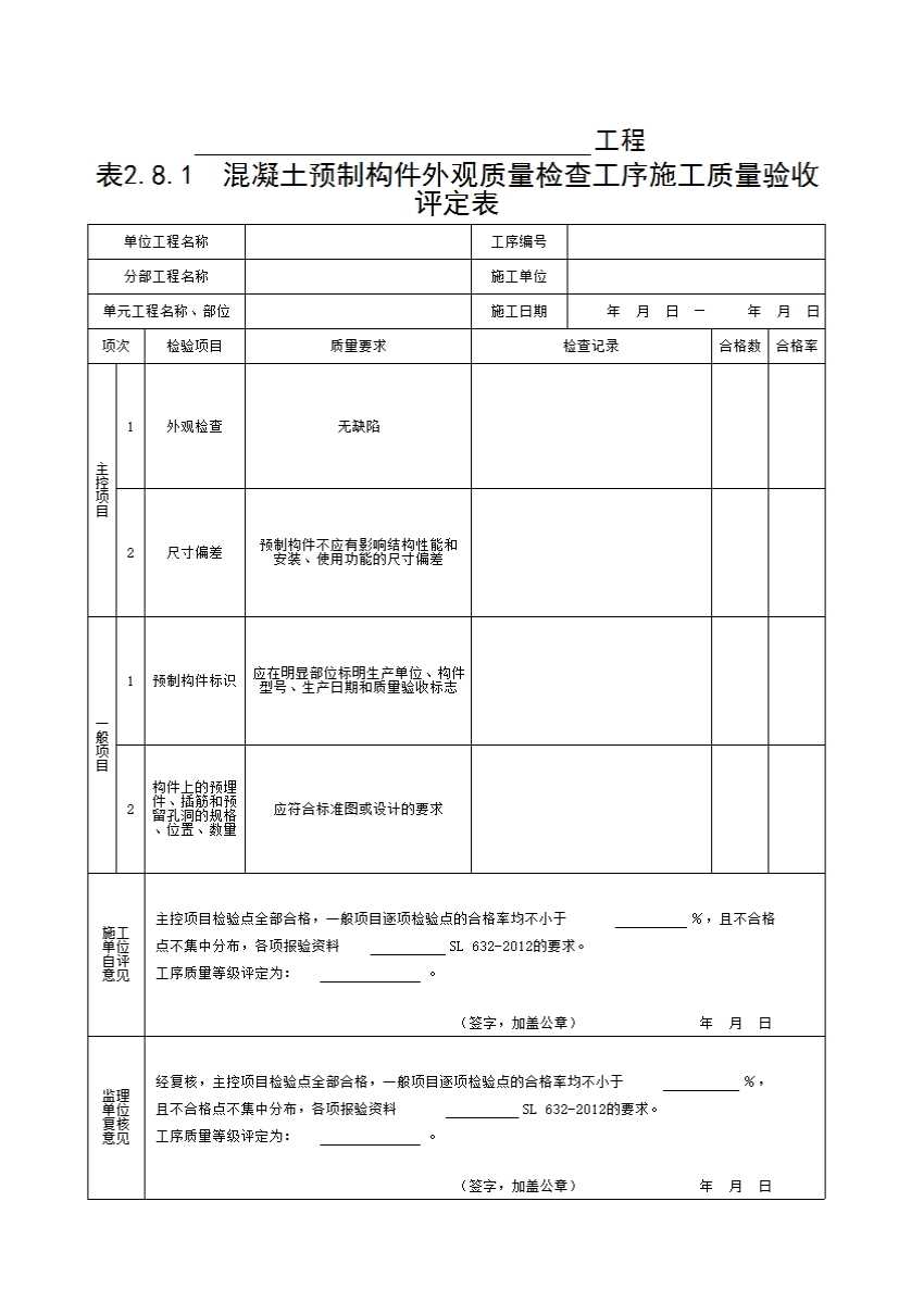 表2.8.1 混凝土预制构件外观质量检查工序施工质量验收评定表填表要求