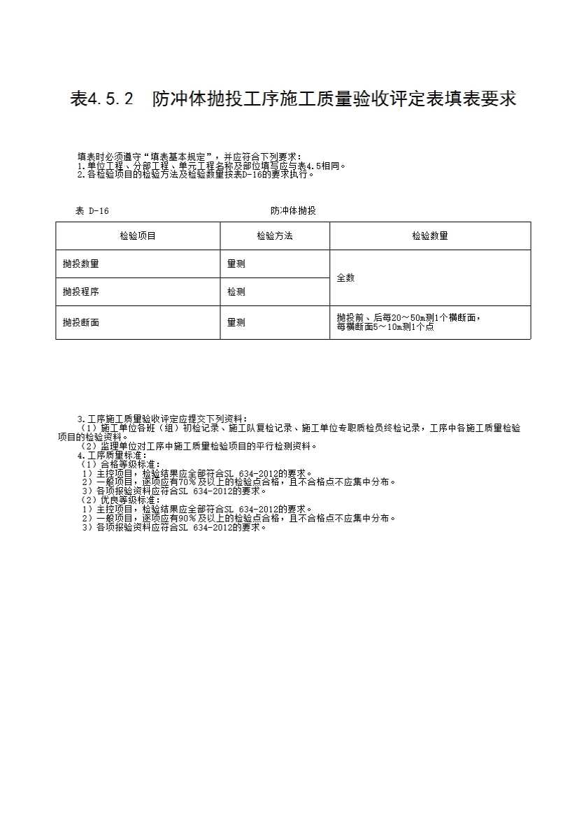 表4.5.2 防冲体抛投工序施工质量验收评定表填表要求