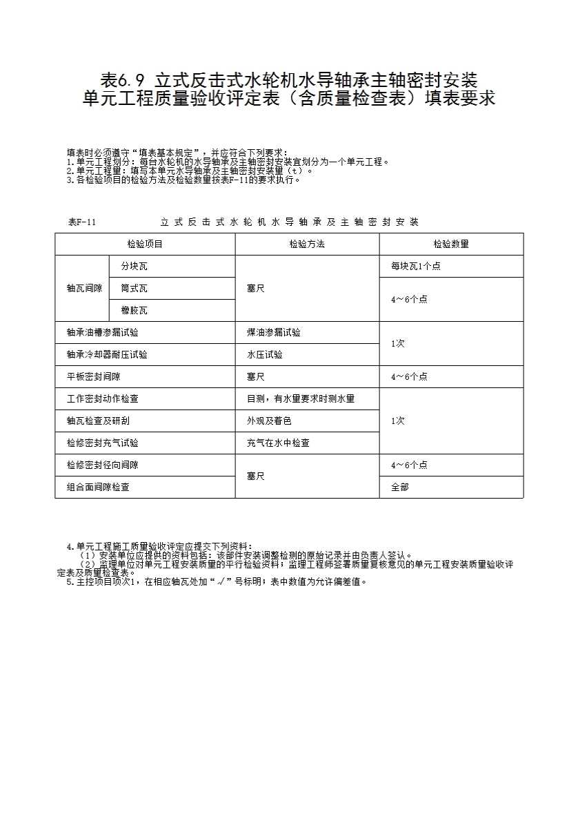 表6.9 立式反击式水轮机水导轴承主轴密封安装单元工程质量验收评定表(含质量检查表)填表要求