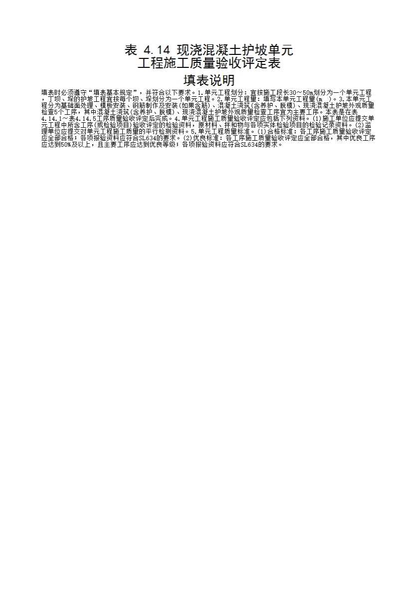 表格名称:表4.14 现浇混凝土护坡单元工程施工质量验收评定表