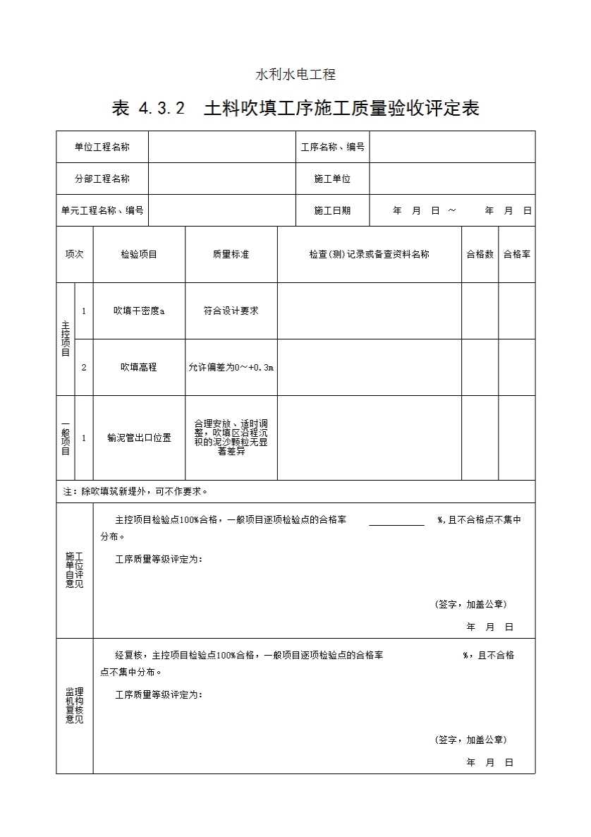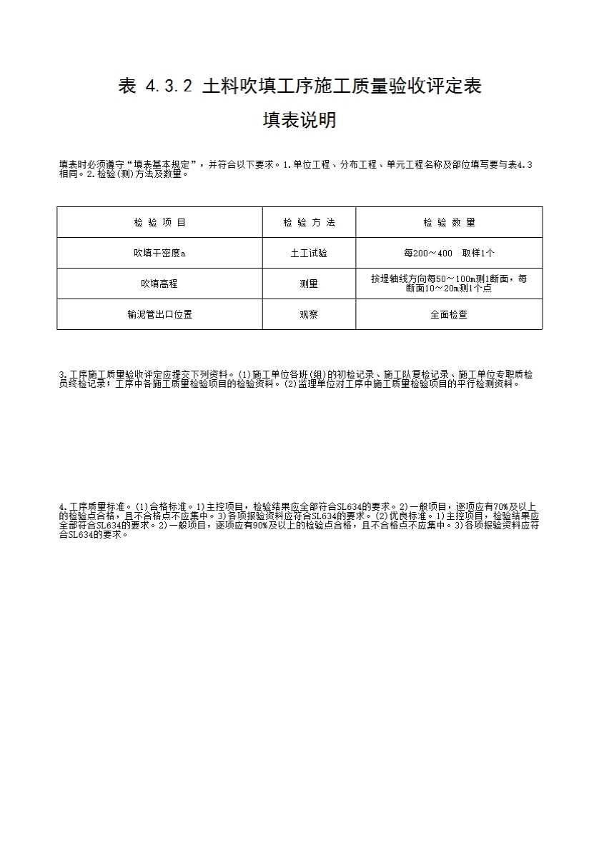 表 4.3.2 土料吹填工序施工质量验收评定表