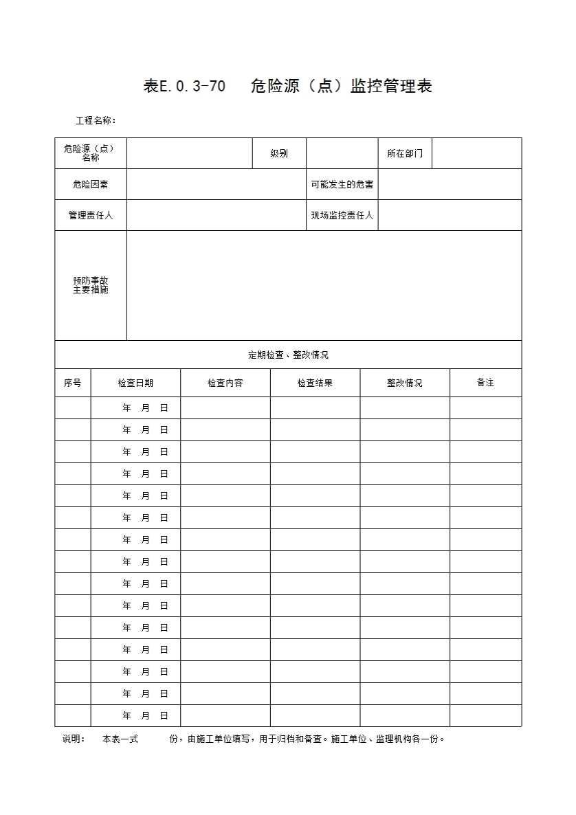 表格名称:表E.0.3-70 危险源(点)监控管理表