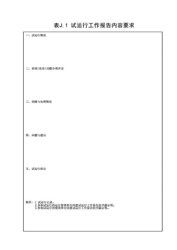 表格名称:表J.1 试运行工作报告内容要求