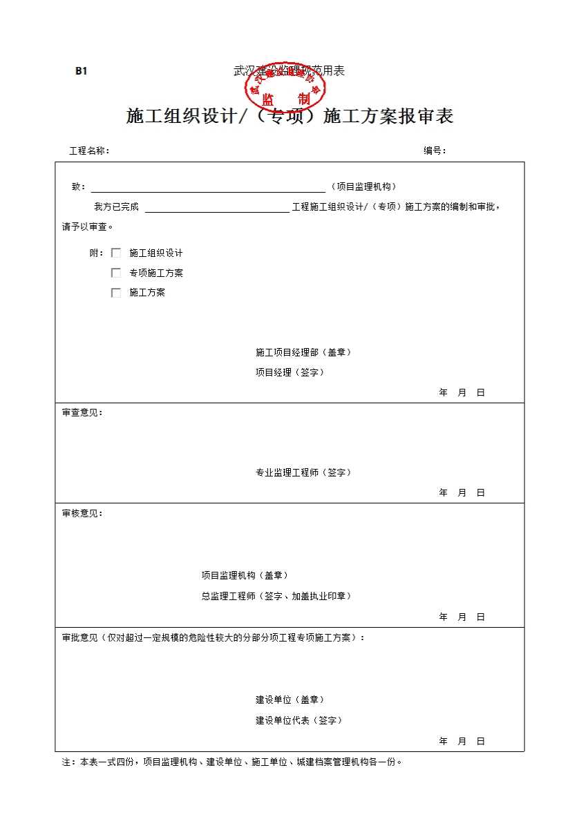 表格名称:B1 施工组织设计/(专项)施工方案报审表