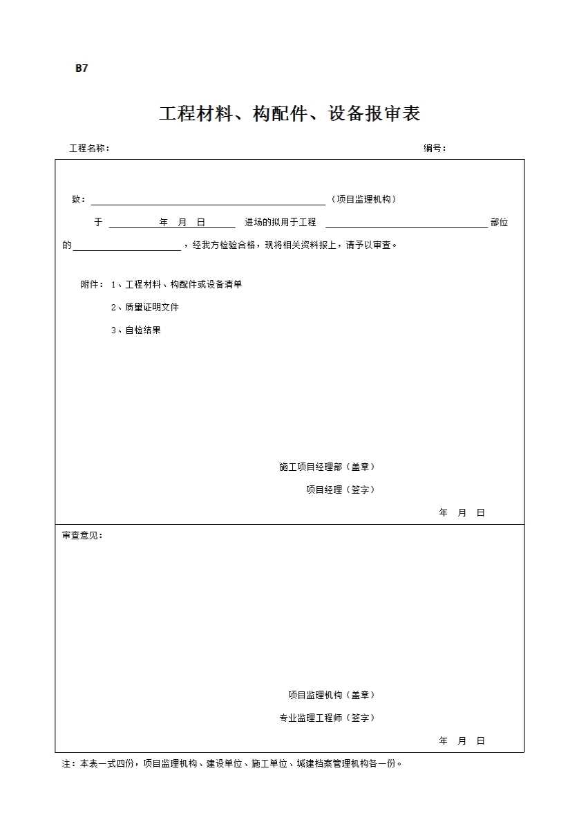 B7 工程材料、构配件、设备报审表