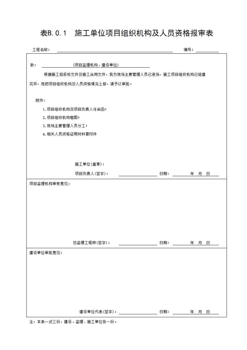 表B.0.1 施工单位项目组织机构及人员资格报审表
