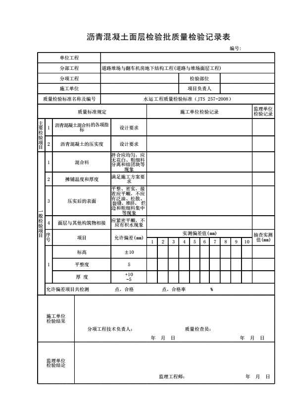 沥青混凝土面层检验批质量检验记录表
