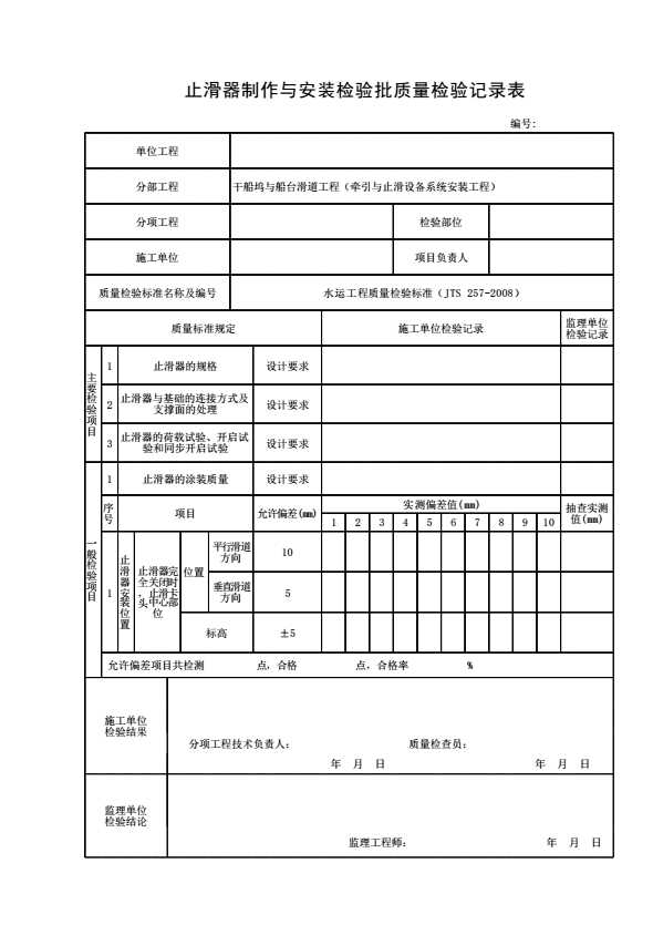 表格名称:止滑器制作与安装检验批质量检验记录表
