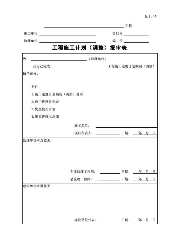 表格名称:D.1.25 工程施工计划(调整)报审表