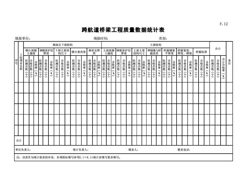 表格名称:F.12 跨航道桥梁工程质量数据统计表