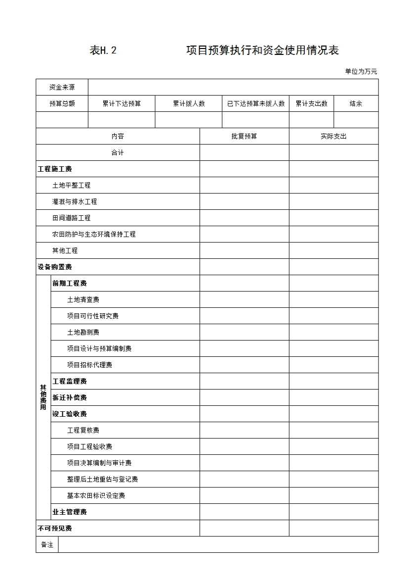 表格名称:表H.2 ×××项目预算执行和资金使用情况表