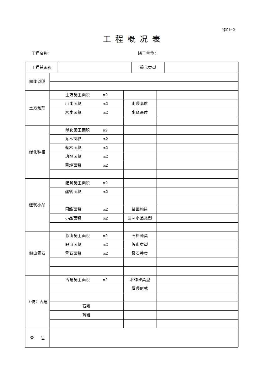 表格名称:c1—2工 程 概 况 表
