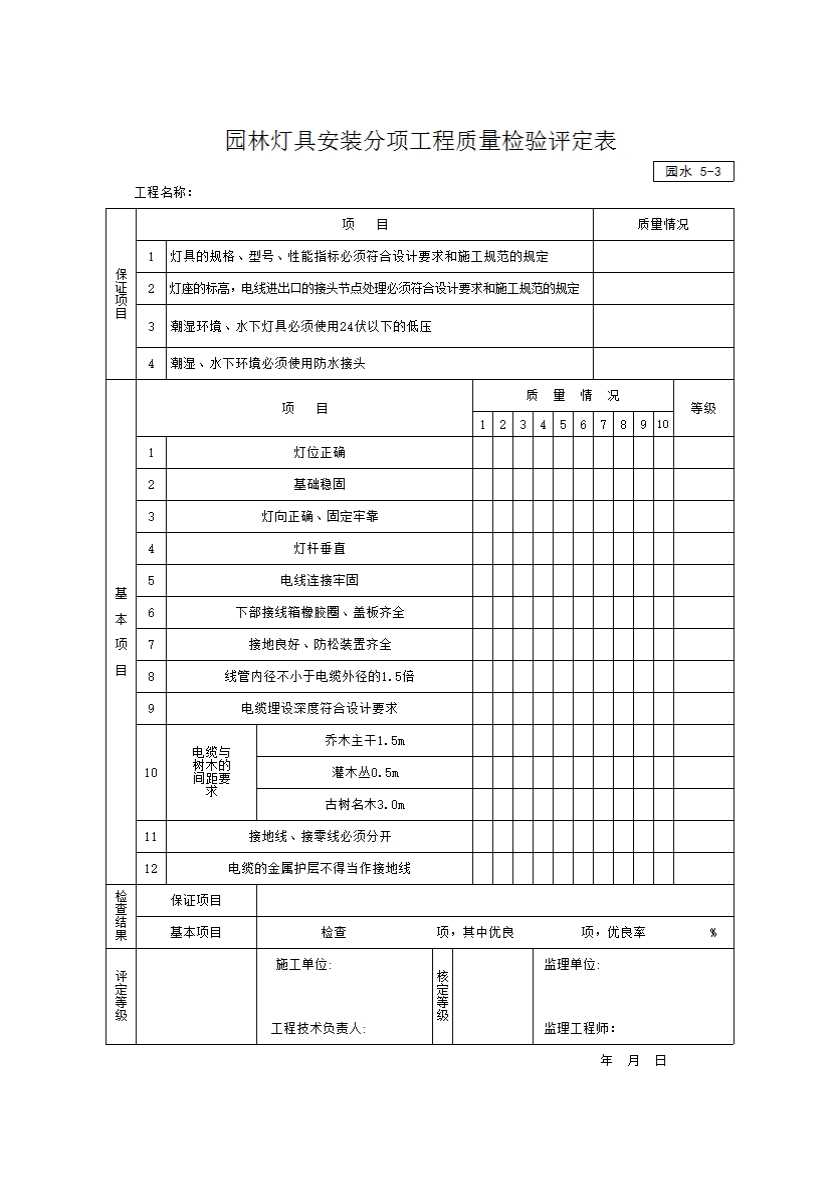 园林绿化工程(绿化)施工技术资料及质量评定表