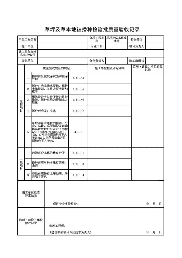 表格名称:草坪及草本地被播种检验批质量验收记录