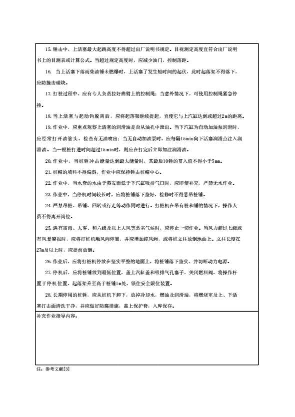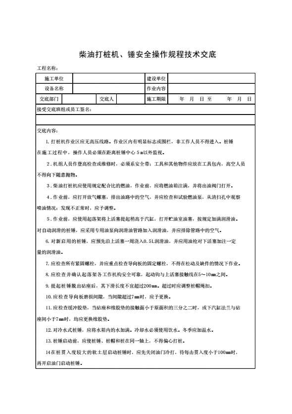 表格名称:柴油打桩机、锤安全操作规程技术交底
