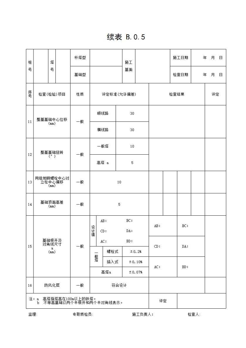 表格名称:表B.0.5 岩石、掏挖基础检查及评定记录表(线基5)