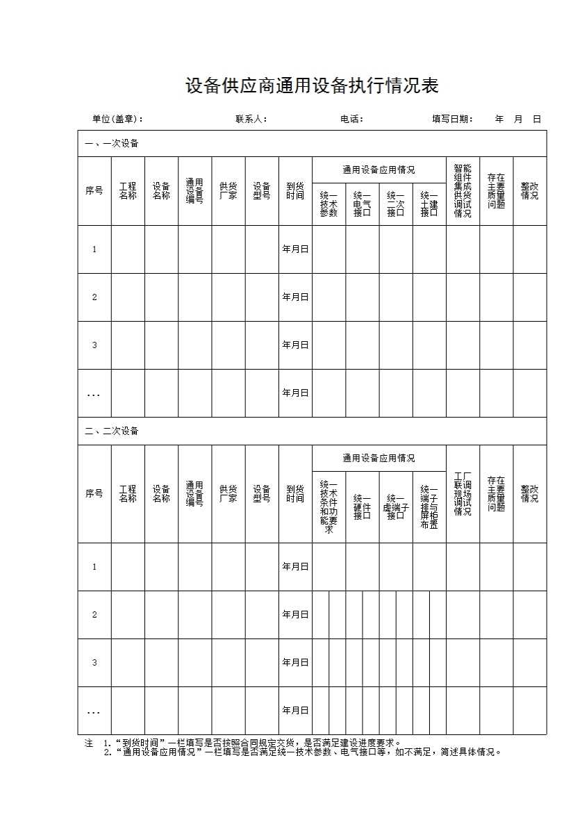 表格名称:XJS3 设备供应商通用设备执行情况表