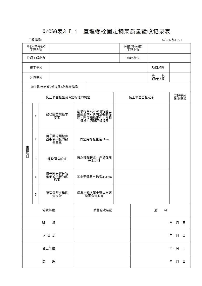 QCSG 表 3-E.1 直埋螺栓固定钢架质量验收记录表