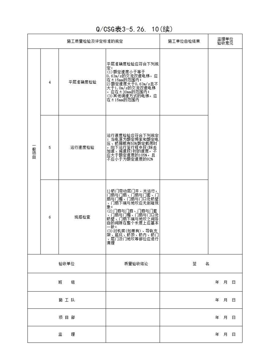QCSG 表 3-5.26.10 电梯整机安装工程检验批质量验收记录表