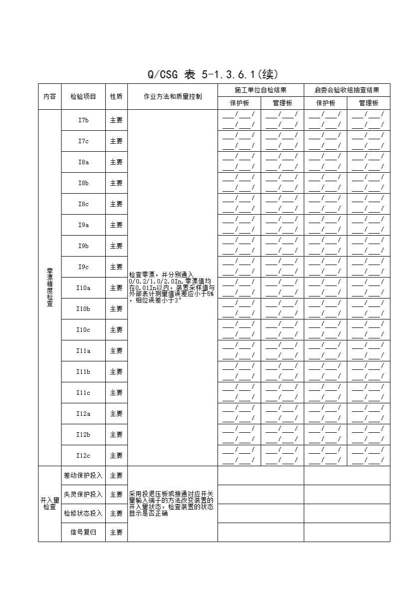 表格名称:QCSG 表 5-1.3.6.1 500kV_____母线保护装置 通用项目检查记录表