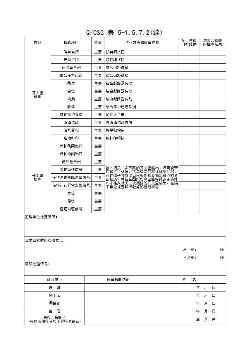 附录B 变电继电保护 分部、分项工程质量验收记录表