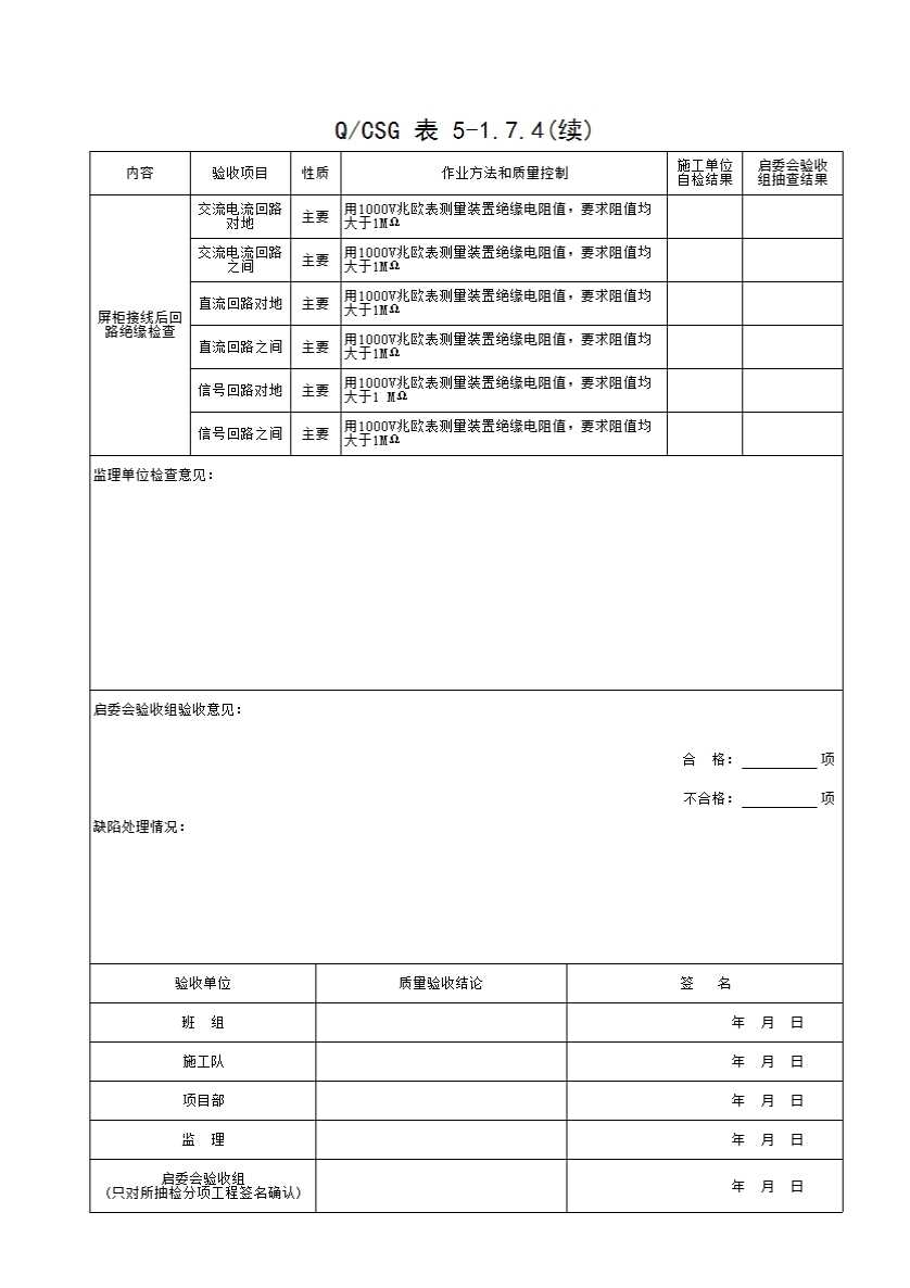 表格名称:QCSG 表 5-1.7.4 220kV_____母线保护 二次回路绝缘检查分项工程质量验收记录表