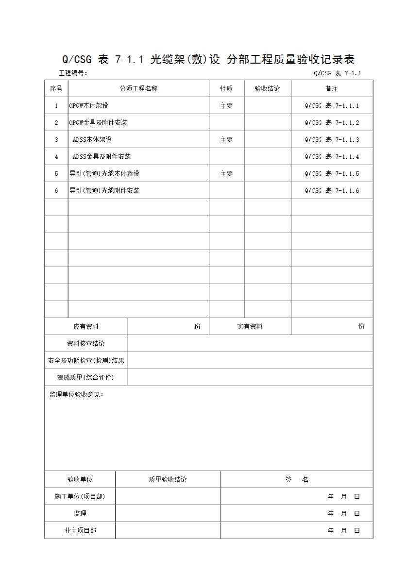 表格名称:2.1 光缆架(敷)设 分部工程质量验收记录表