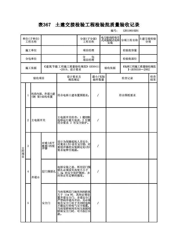 表格名称:120110010201 土建交接检验工程检验批质量验收记录