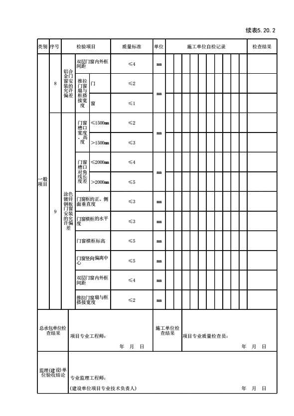 表格名称:[符合表5.20.2]表7.5.33金属门窗安装检验批质量验收记录