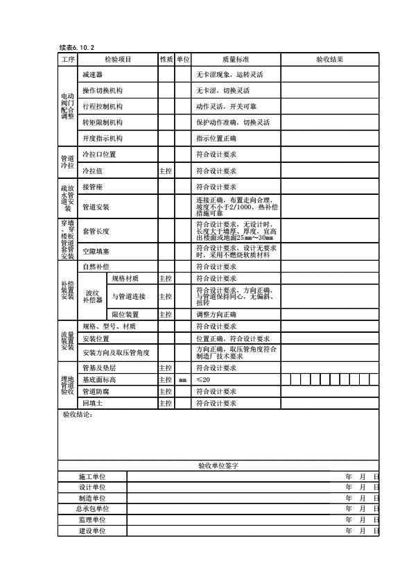 表6.10.2 主厂房中、低压金属管道安装检验批施工质量验收表