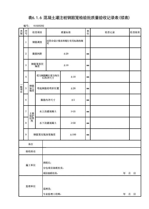 表格名称:表6.1.6 混凝土灌注桩钢筋笼检验批质量验收记录表