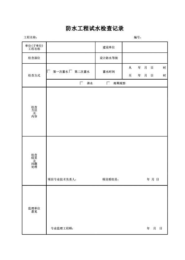 防水工程试水检查记录