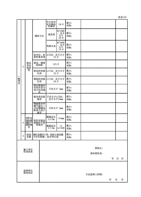 表格名称:140102030604 钢构件(墙架、檩条)安装检验批质量验收记录