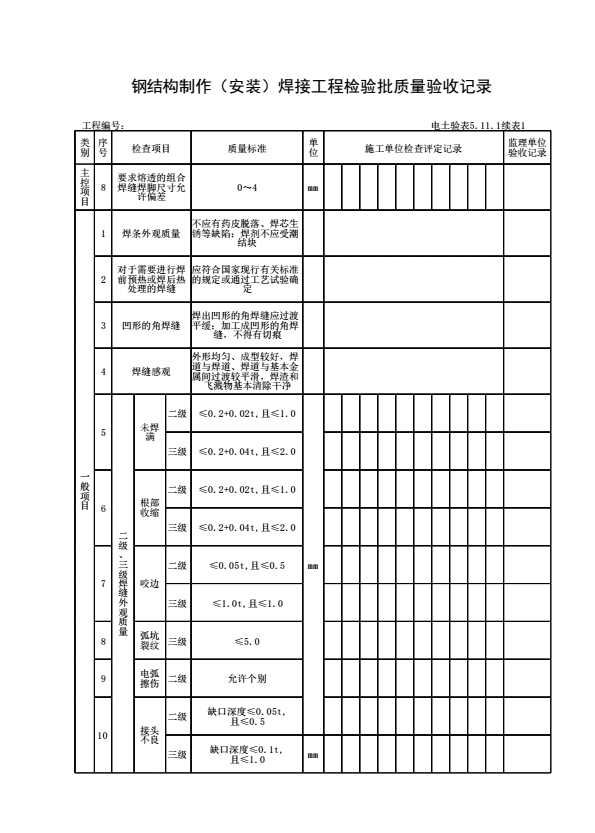 表格名称:电土验表5.11.1 钢结构制作(安装)焊接工程检验批质量验收记录