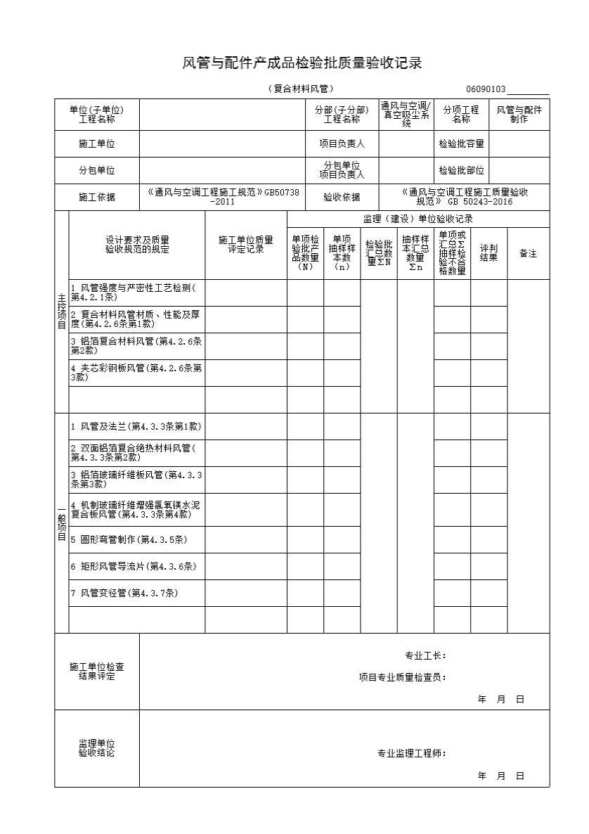 06090103_风管与配件产成品检验批质量验收记录(复合材料风管)