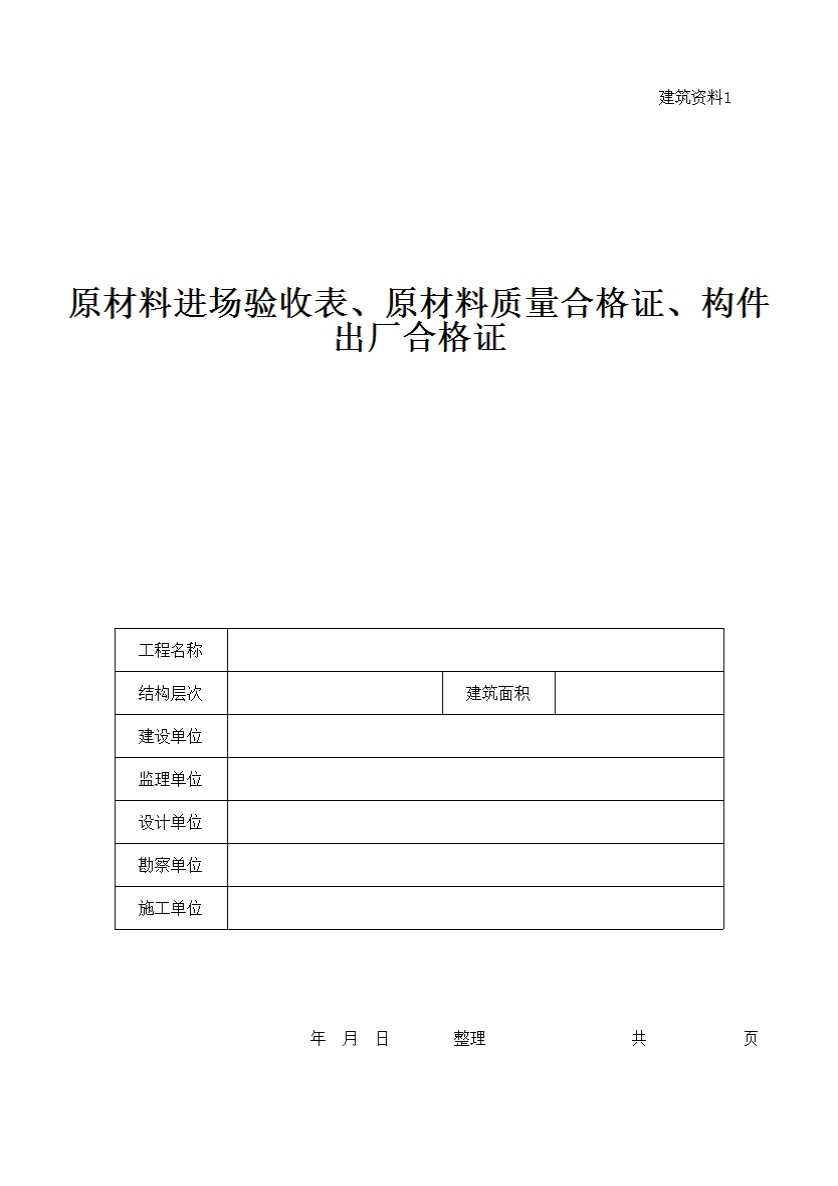 表格名称:原材料进场验收表、原材料质量合格证、构件出厂合格证