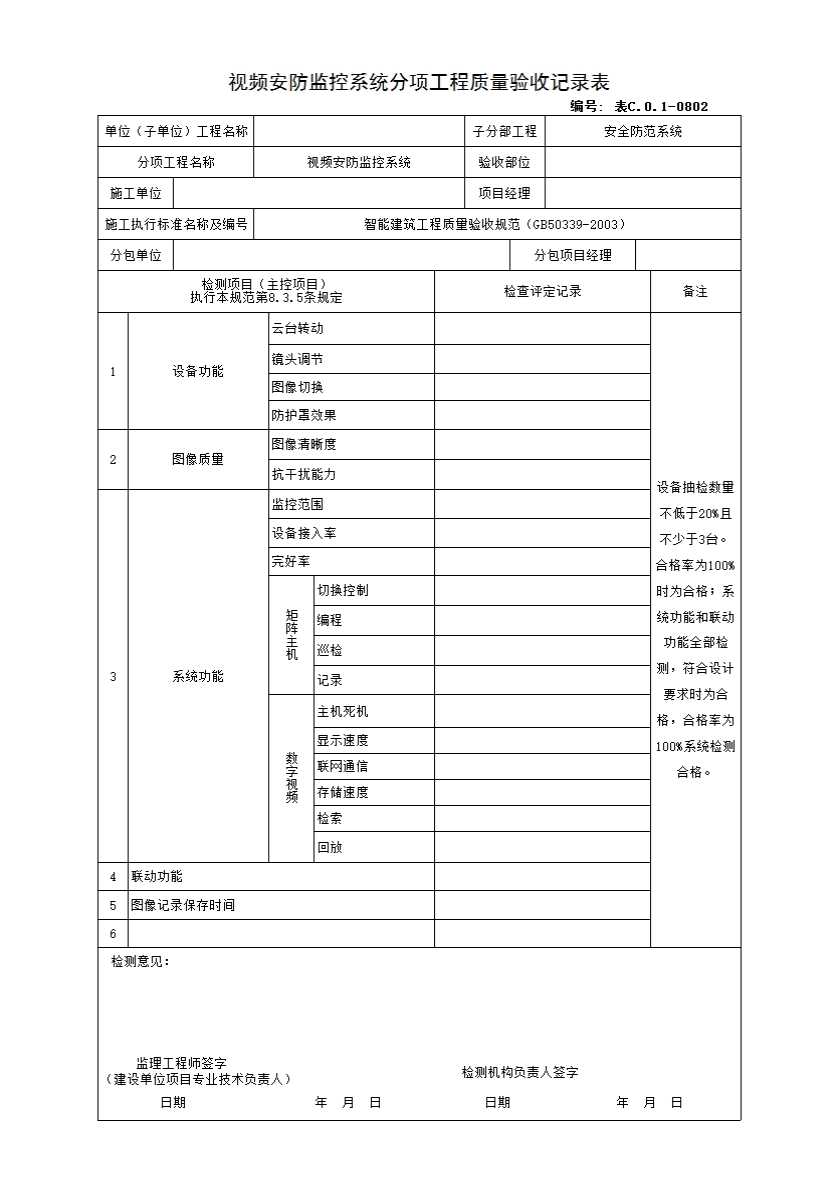 C.0.1-0802 视频安防监控系统分项工程质量验收记录表