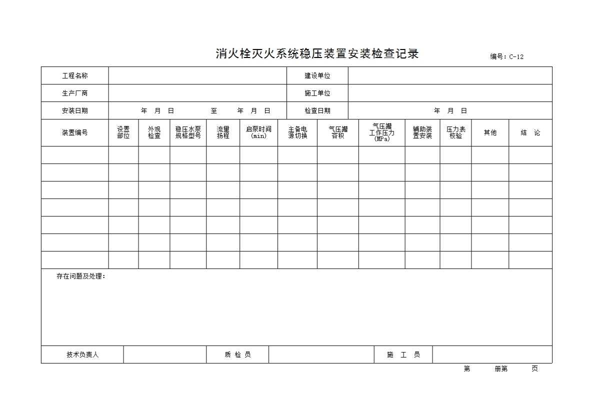 表格名称:消火栓灭火系统稳压装置安装检查记录
