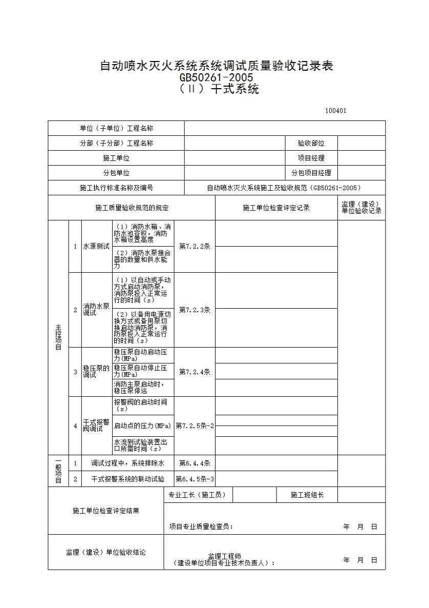 表格名称:16 调试质量验收记录表(Ⅱ)干式系统(100401)