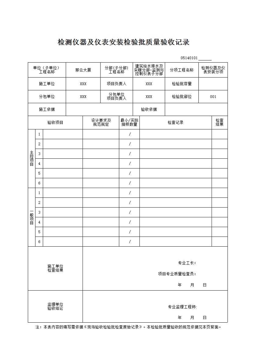 表格名称:05140101_检测仪器及仪表安装检验批质量验收记录