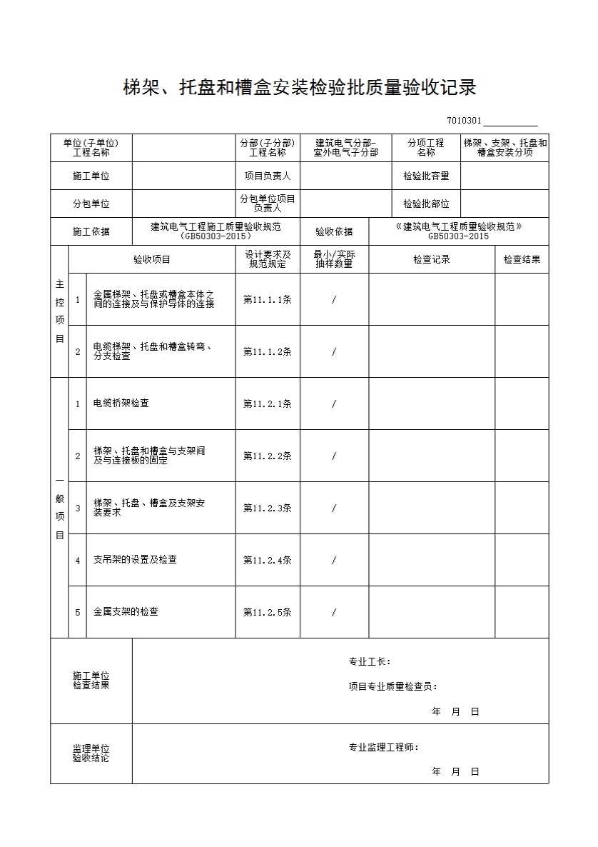 07010301 梯架、托盘和槽盒安装检验批质量验收记录
