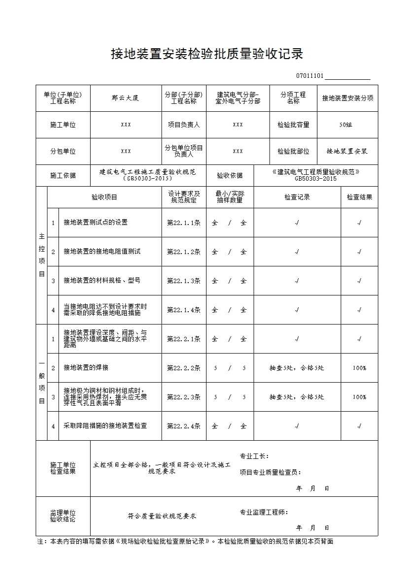 07011101 接地装置安装检验批质量验收记录