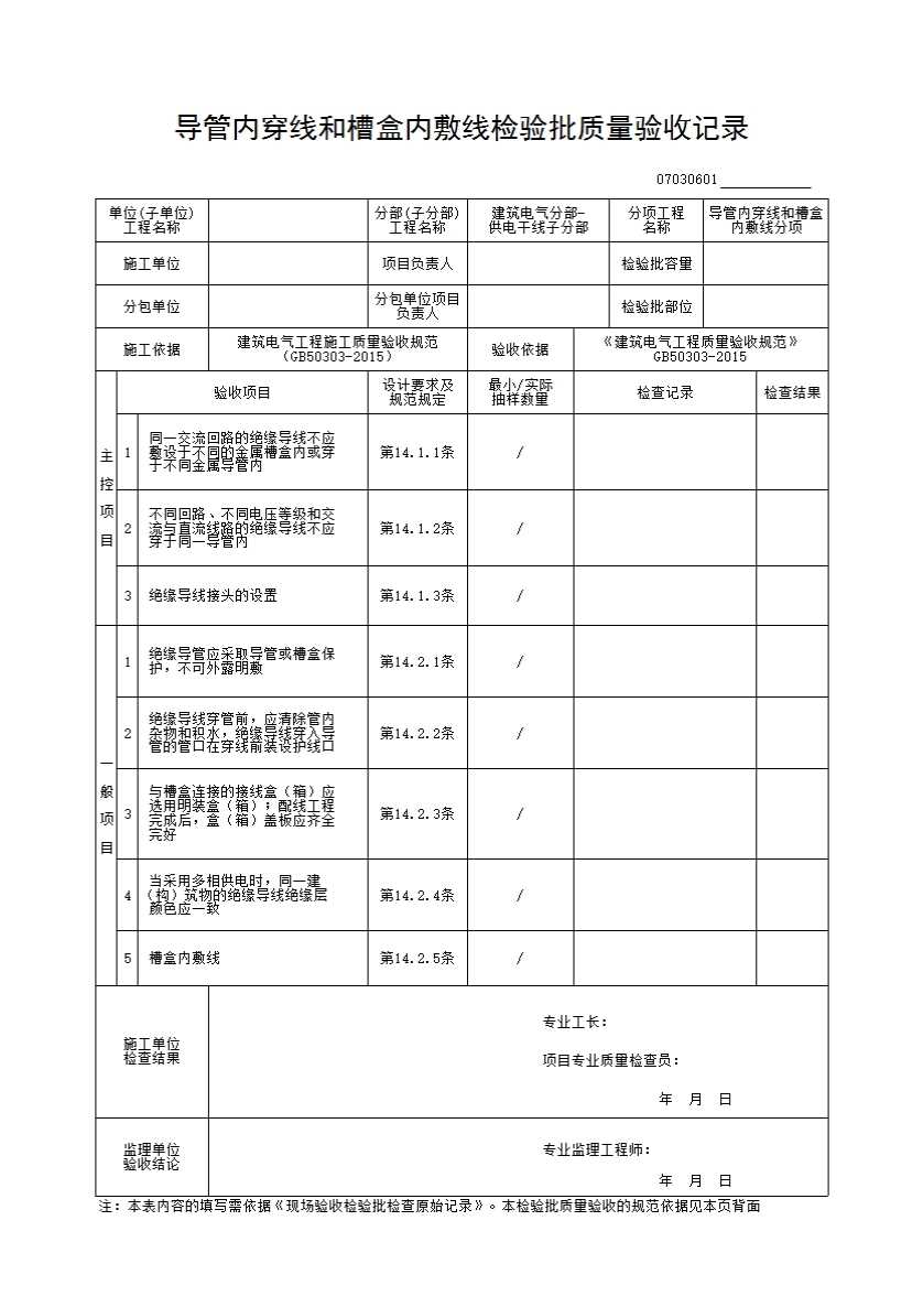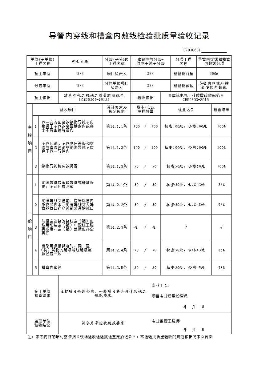 导管内穿线和槽盒内敷线检验批质量验收记录