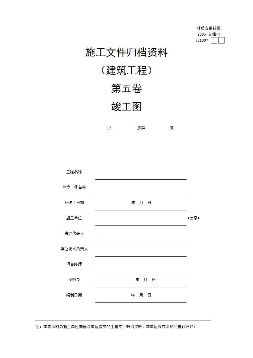 表格名称:2005文档-7 施工文件归档资料(建筑工程)第五卷