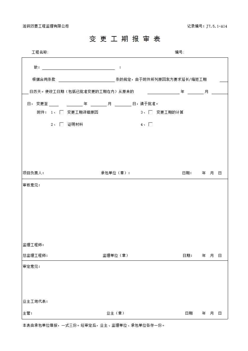表格名称:2 变更工期报审表