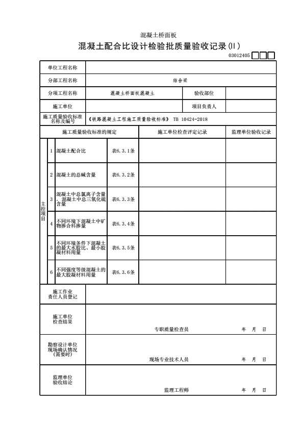 表格名称:03012405 混凝土配合比设计检验批质量验收记录(Ⅱ)