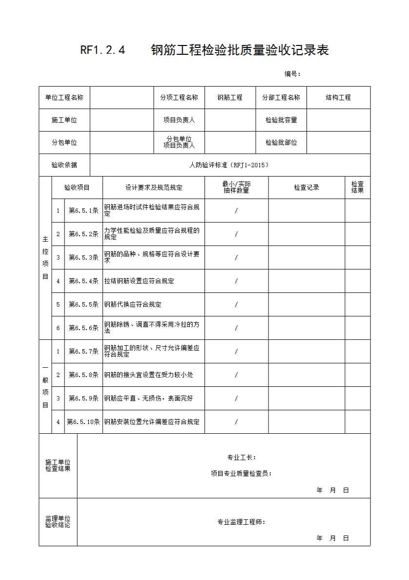 表格名称:RF1.2.4 钢筋工程检验批质量验收记录表
