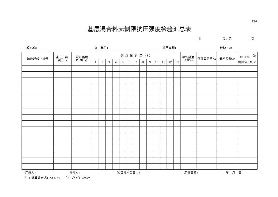 表格名称:F16 基层混合料无侧限抗压强度检验汇总表