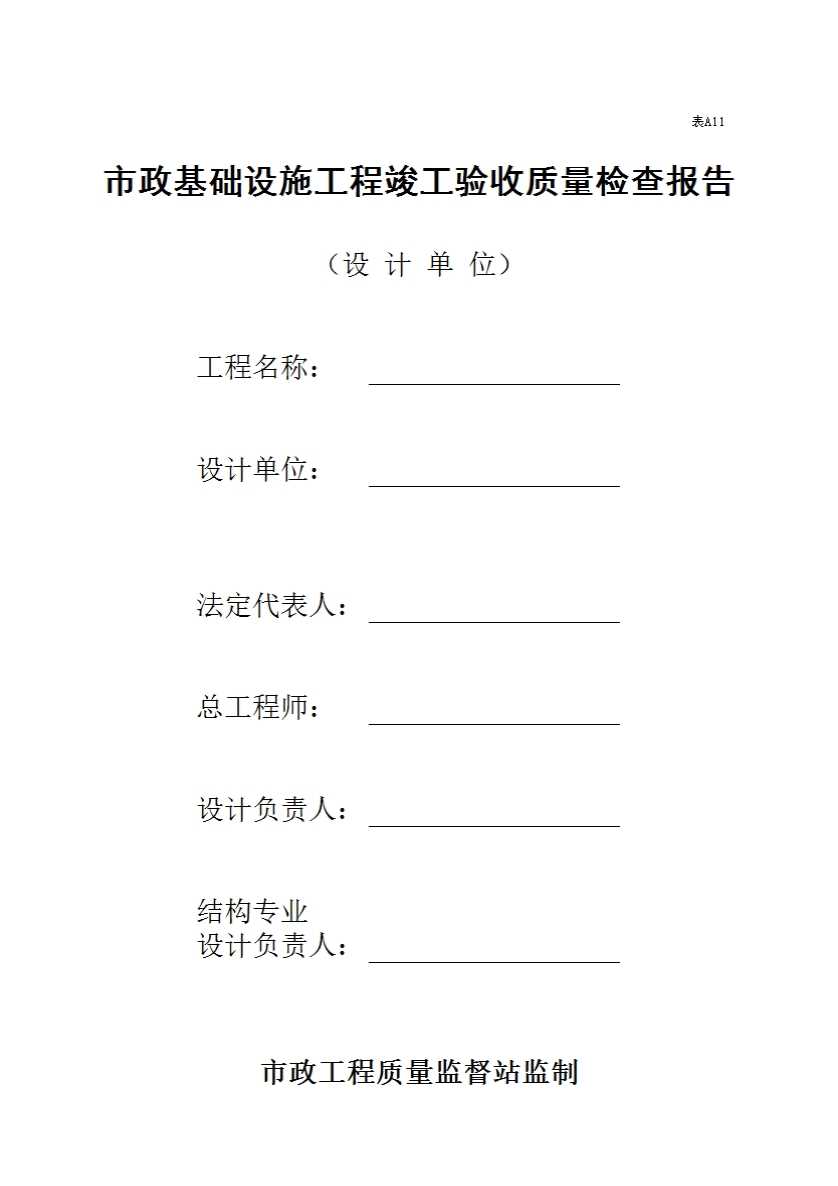 表A15 市政基础设施工程竣工验收质量检查报告